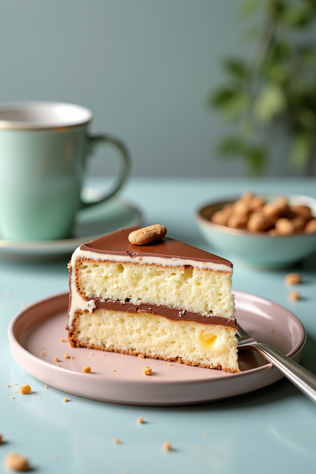 Besonders beliebt ist die Cheesecake-Variation, bei der eine Frischkäseschicht mit Erdnussbutter kombiniert wird. Die Mini-Torten-Version erfreut sich großer Beliebtheit bei Partys, da sie portionsgerecht serviert werden kann. Eine raffinierte Abwandlung stellt die Eistorten-Version dar, bei der gefrorene Karamell- und Schokoladencreme für eine erfrischende Alternative sorgen. Für Feinschmecker gibt es die Pralinée-Variante mit extra knusprigen Haselnusskrokant-Einlagen. Die Hochzeitstorten-Version wird oft mehrstöckig mit eleganter Schokoladenglasur und goldenen Akzenten gestaltet. Regional beliebt ist auch die Kombination mit lokalen Spezialitäten wie Schwarzwälder Kirschwasser oder bayerischem Nougat, die dem klassischen Naschwerk eine besondere Note verleihen.